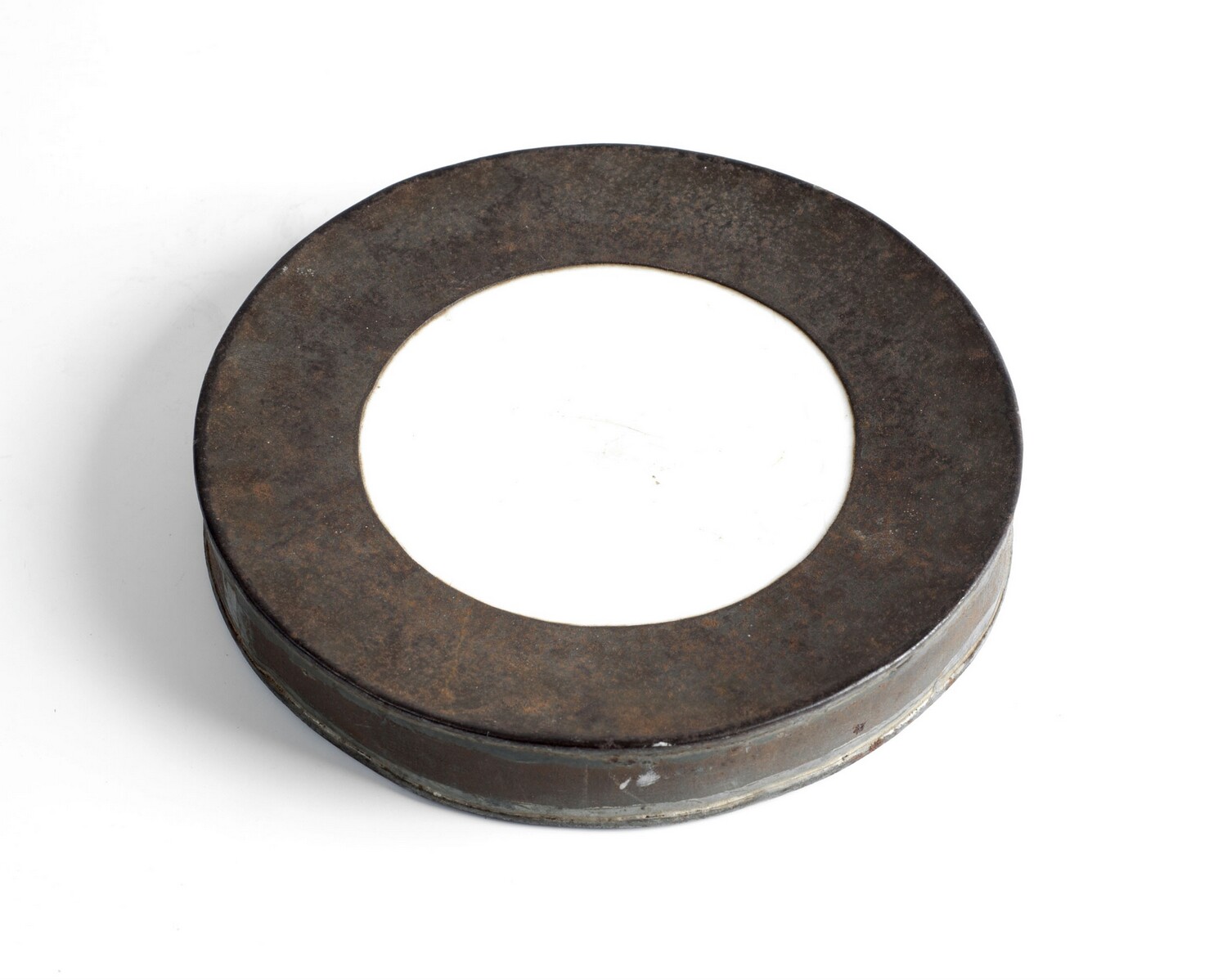 Rond plateau, gemaakt van porselein en blik, onderdeel van een spel (Nederlands)