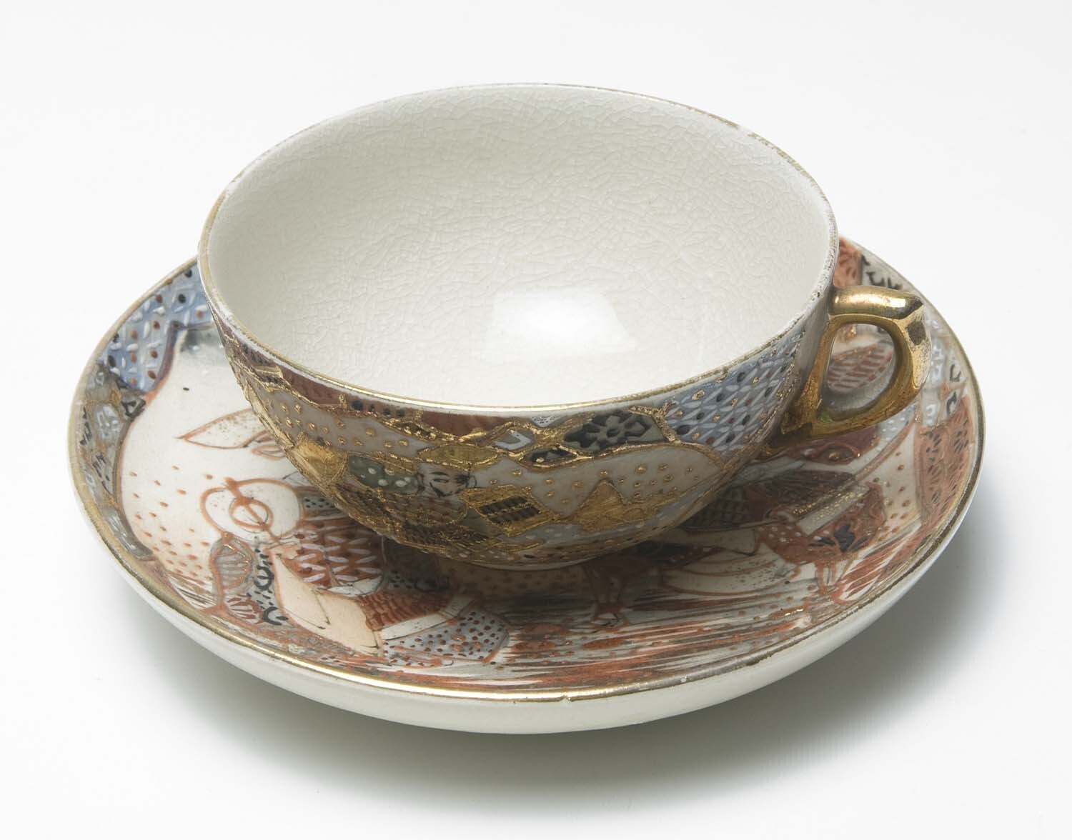 Craquelé aardewerken kopje en schoteltje (Nederlands)
