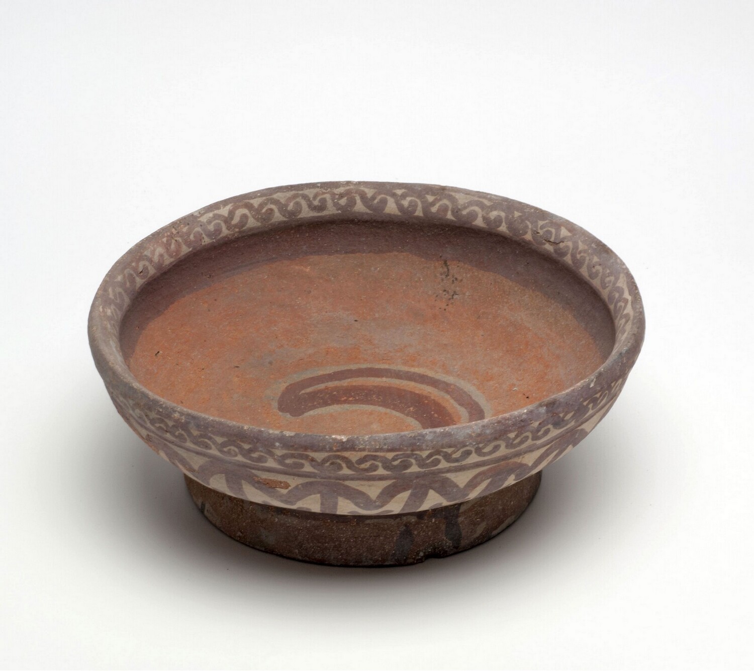 Aardewerken schaal op rond voetstuk (Nederlands)