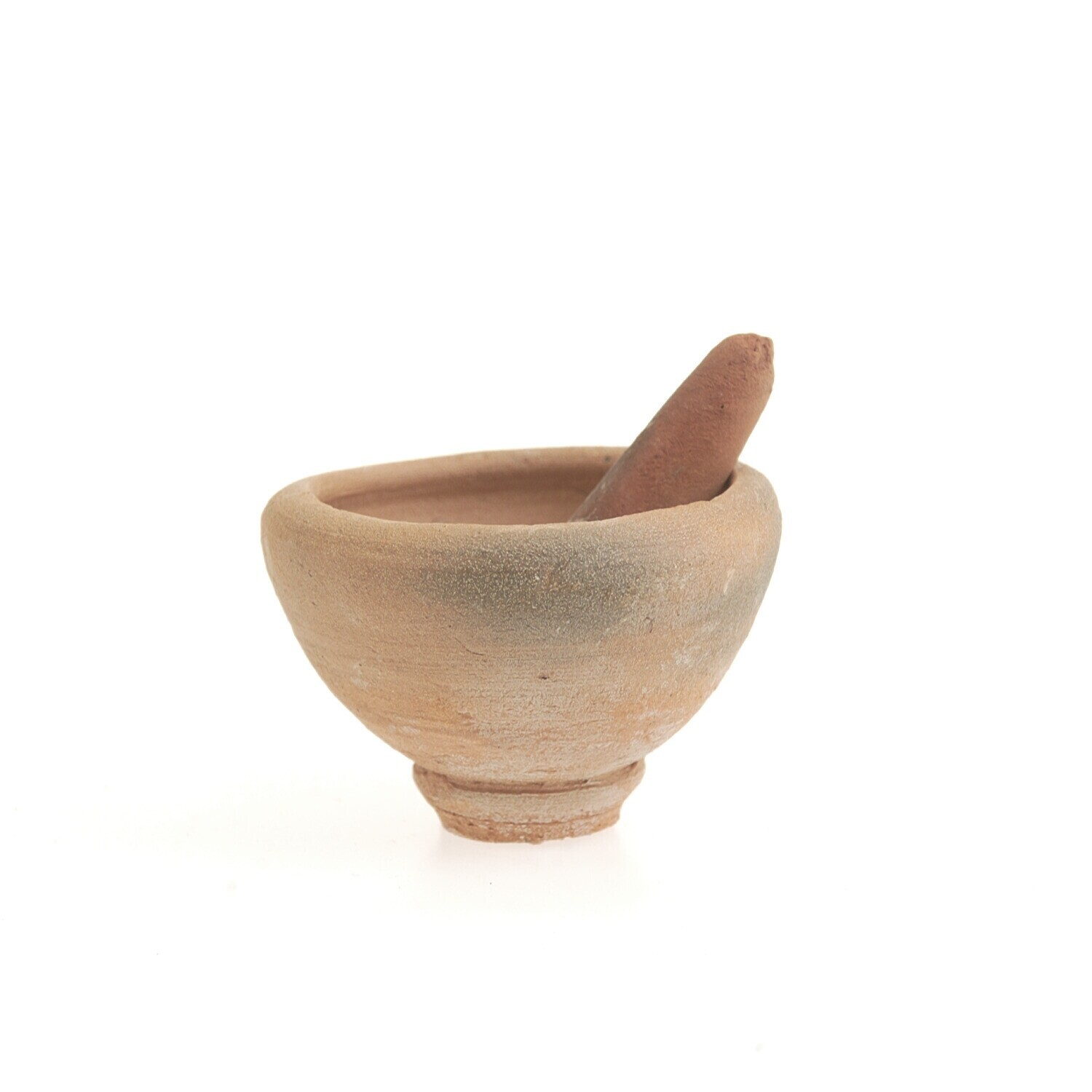 Aardewerken vijzel, onderdeel van een speelgoedservies (Nederlands)