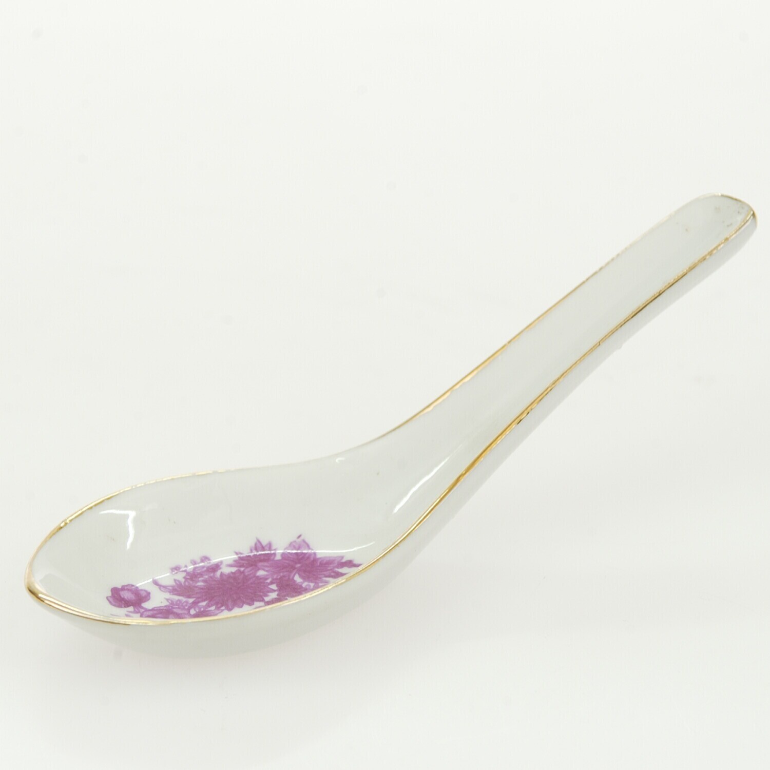 Porseleinen soeplepel met goudkleurig randje, onderdeel van een servies voor de rijstmaaltijd (Nederlands)