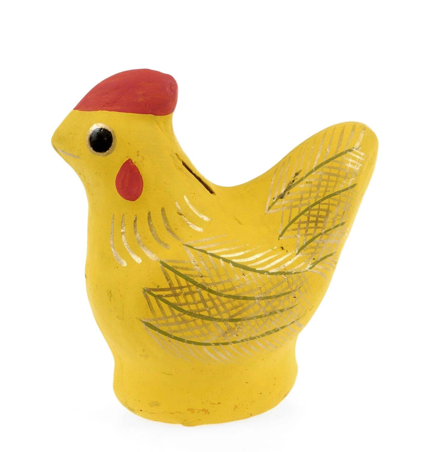 Aardewerken spaarpot in de vorm van een zittende kip (Nederlands)