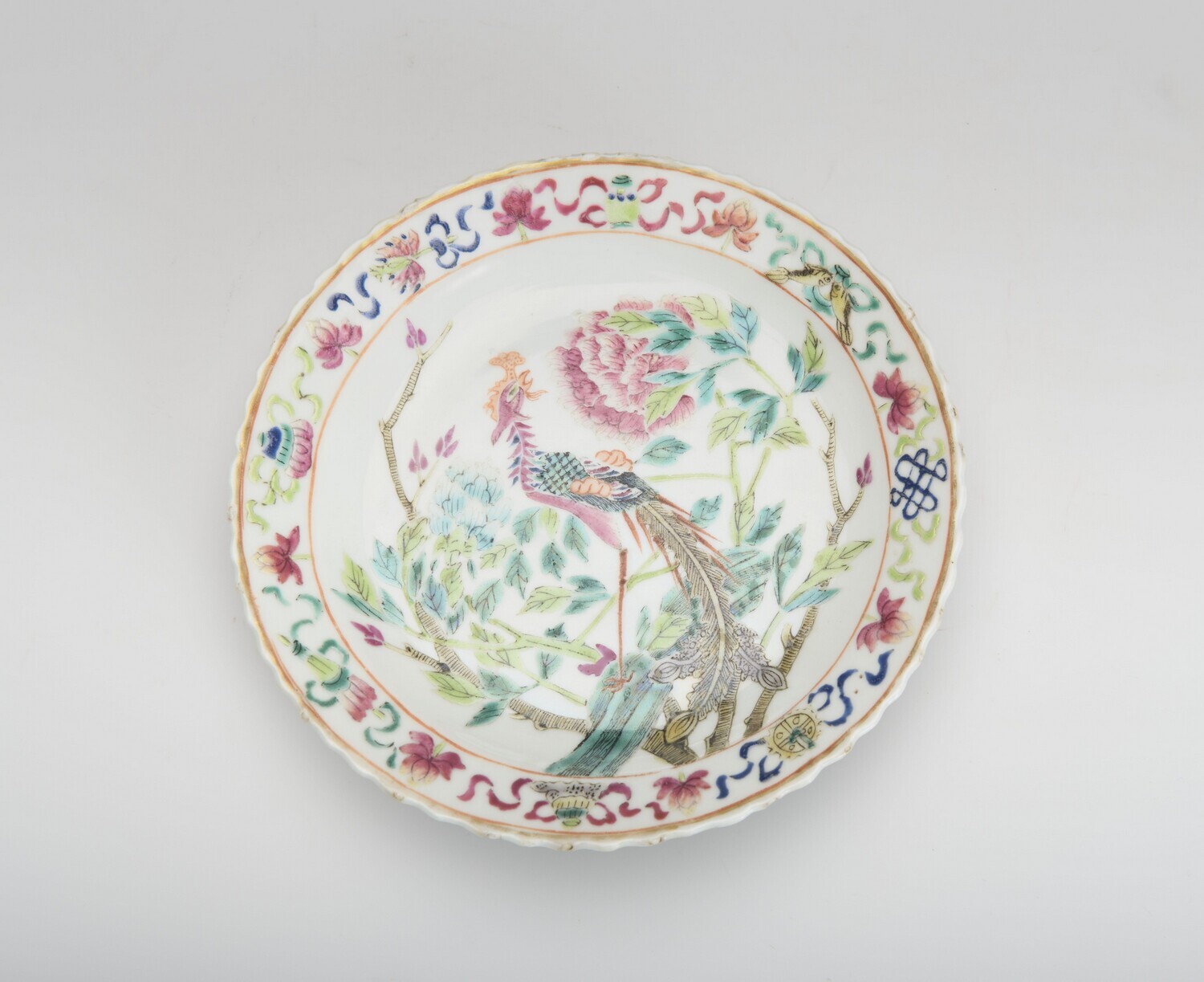 Porseleinen bord met siervogel (pauw?) en bloemmotieven||Singapore||https://hdl.handle.net/20.500.11840/166309
