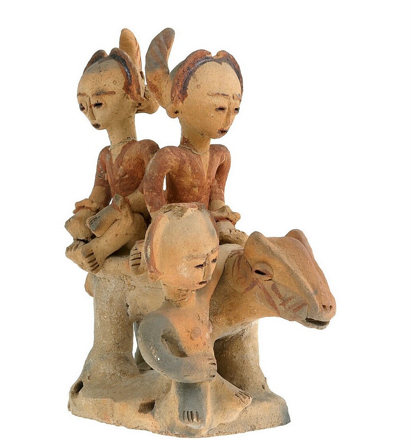 Aardewerken buffel met mensfiguren erop en een ernaast (Nederlands)