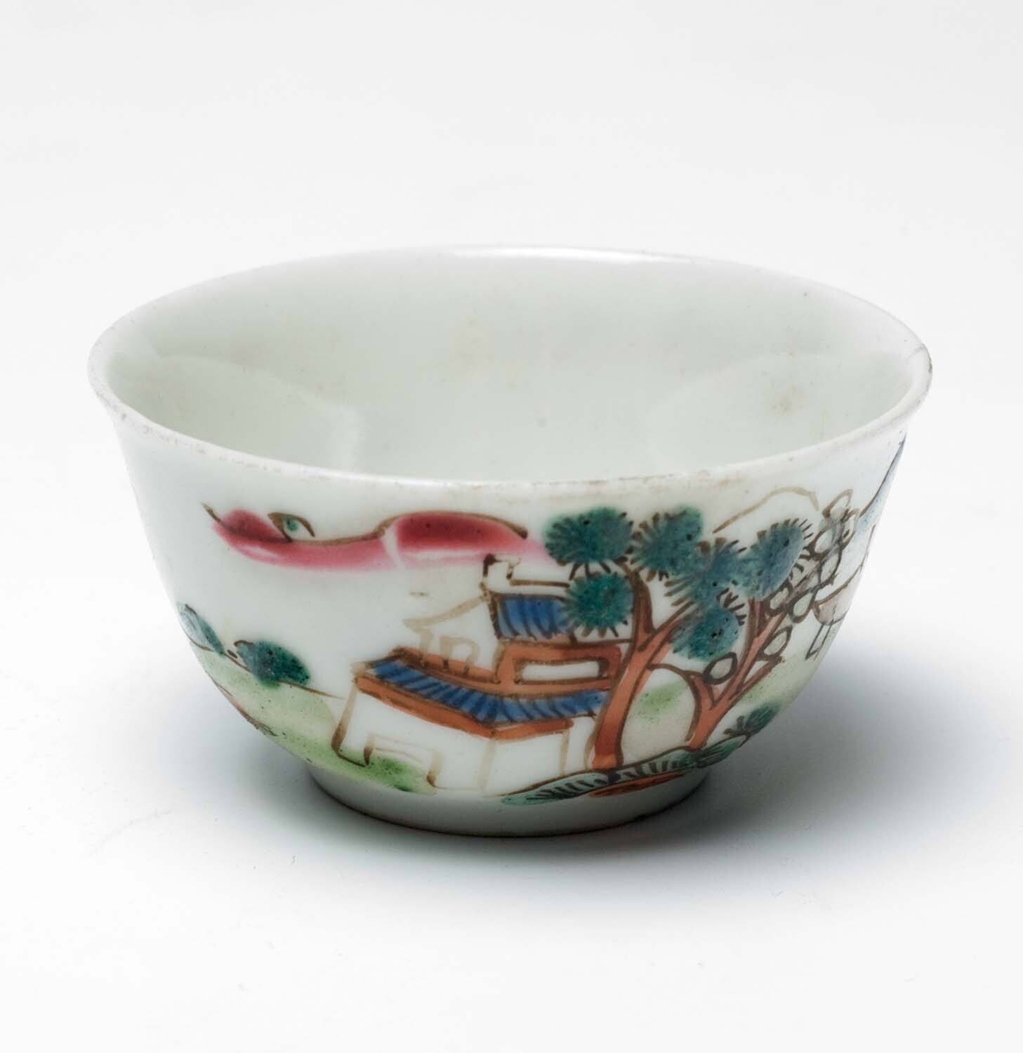 Porseleinen sakekopje met landschapversiering (Nederlands)
