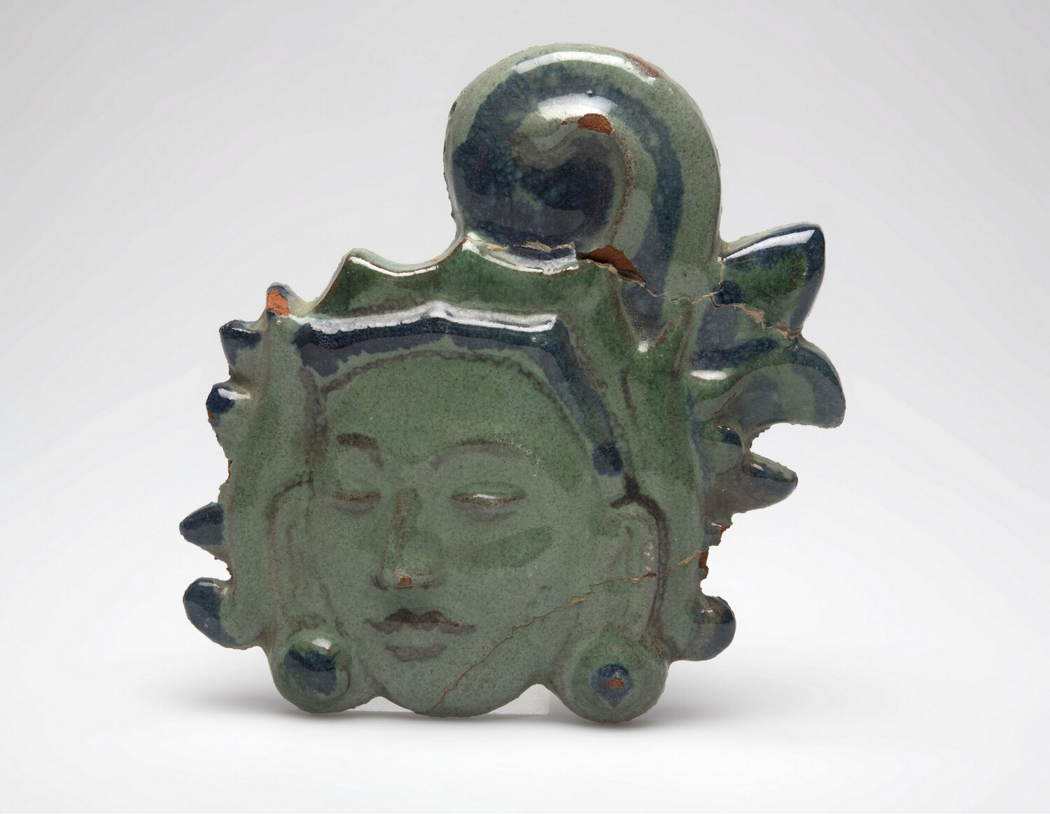 | Nederlands | Aardewerken beeld, voorstellende de kop van een hemelnimf |