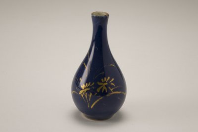 Knotsvormig miniatuurflesje (powder blue) met gouddecor.