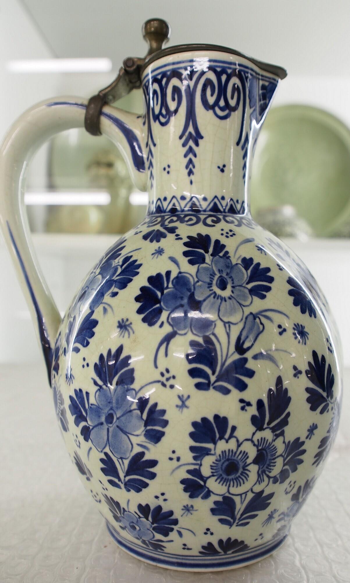 Kan met tinnen deksel en gedecoreerd met klassiek decor van strooibloemen (Nederlands)