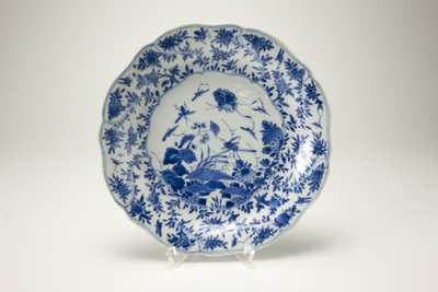 Blauw wit drukbewerkt bord met onregelmatig golvende rand, Van Diepencollectie, JMD-P-1018 |