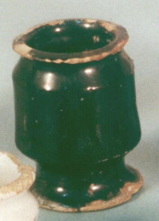 zwarte albarello-vormige zalfpot met ingesnoerde voet;
