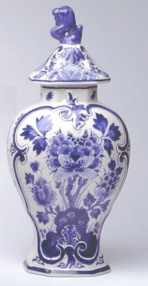 O of D (figuratief teken van) flesje JT Delft J.v.D. C.J. 1658 (onderkant vaas); LvW (binnenkant deksel) (Nederlands)