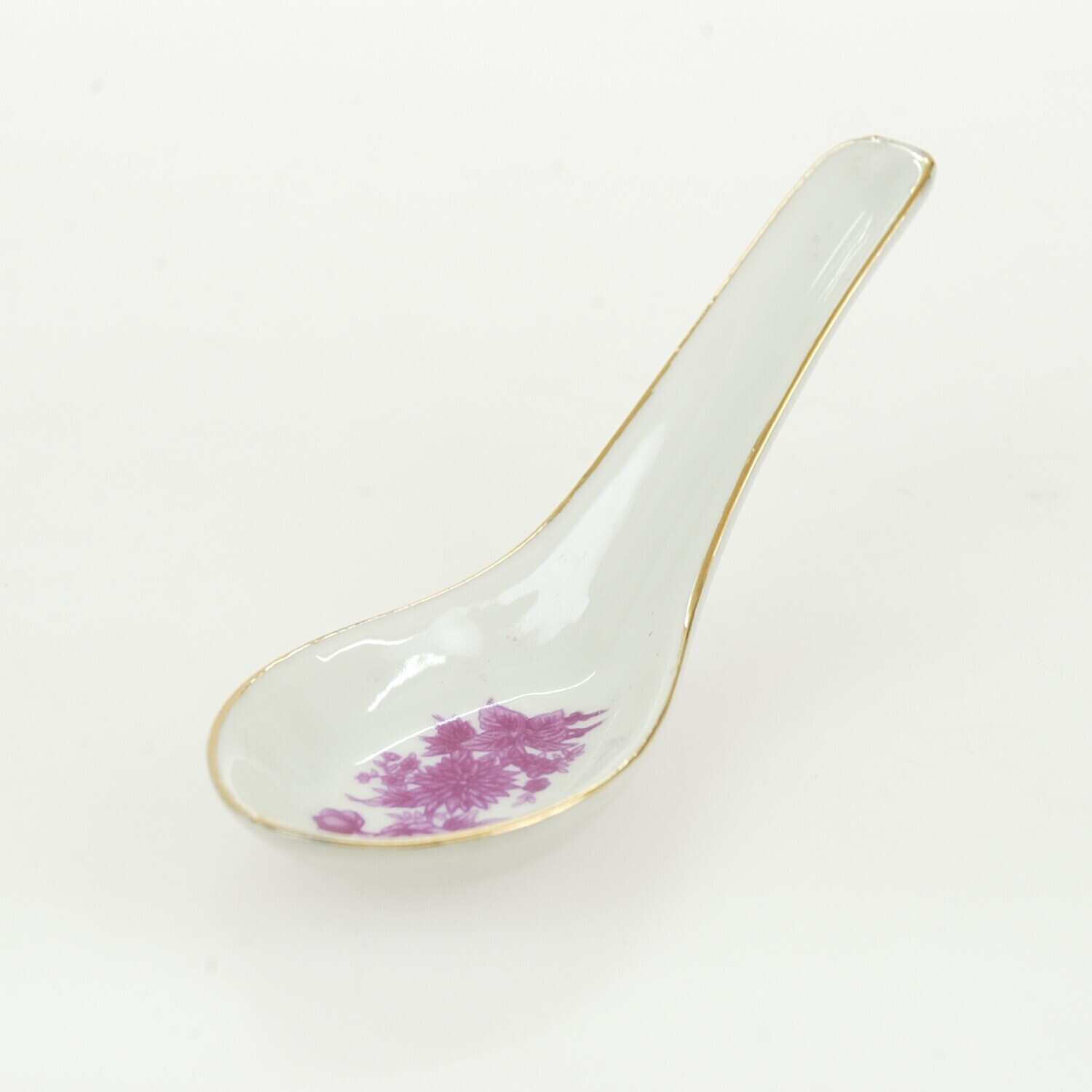 Porseleinen soeplepel met goudkleurig randje, onderdeel van een servies voor de rijstmaaltijd