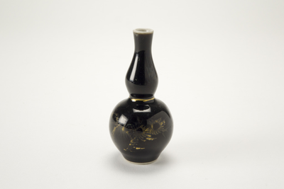 Zwart kalebasvormig miniatuur flesje met sporen van gouddecor, Van Diepencollectie, JMD-P-1082 |