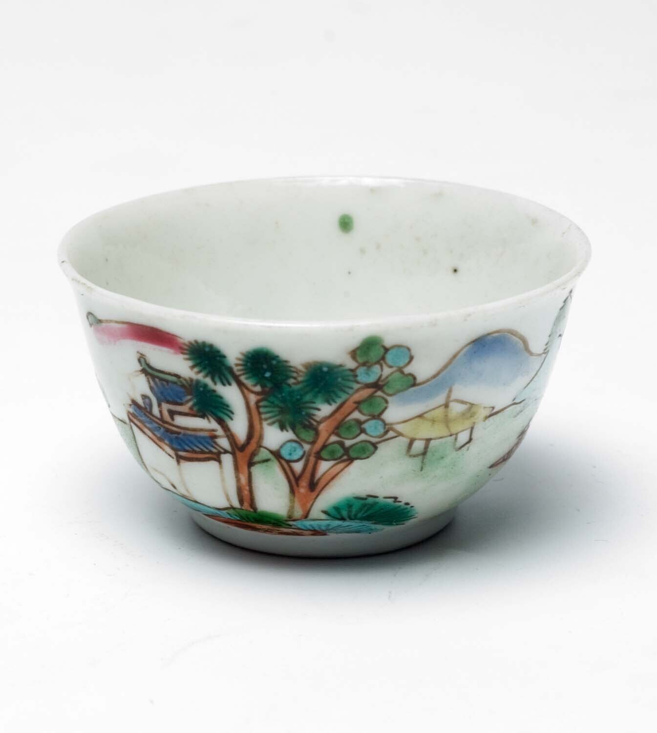 Porseleinen sakekopje met landschapversiering (Q39451)