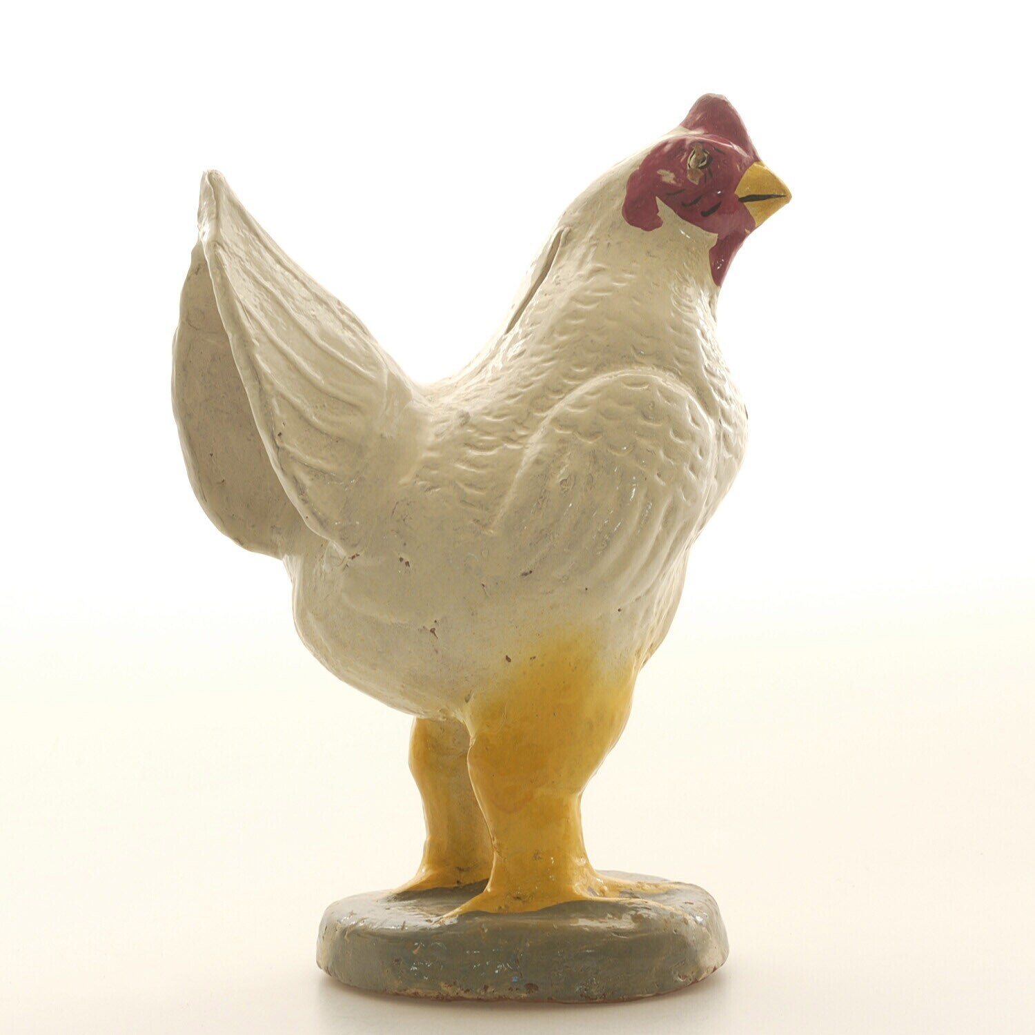 | Nederlands | Aardewerken spaarpot in de vorm van een staande kip |