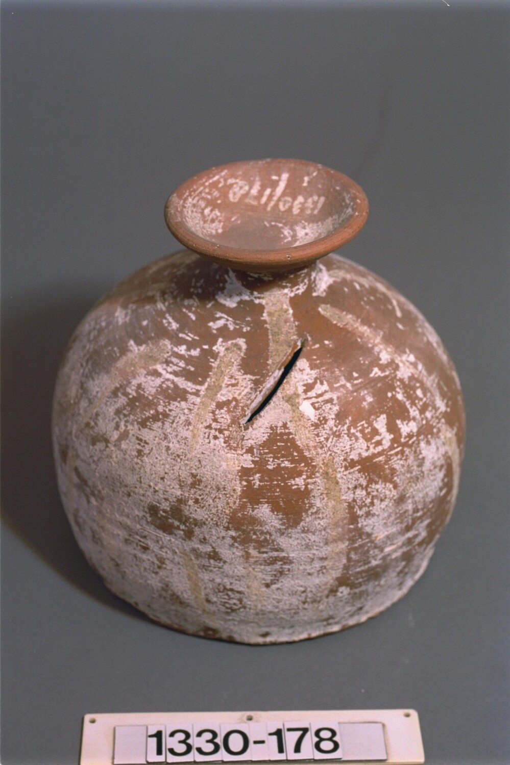 Kruikvormige spaarpot van aardewerk (Nederlands)