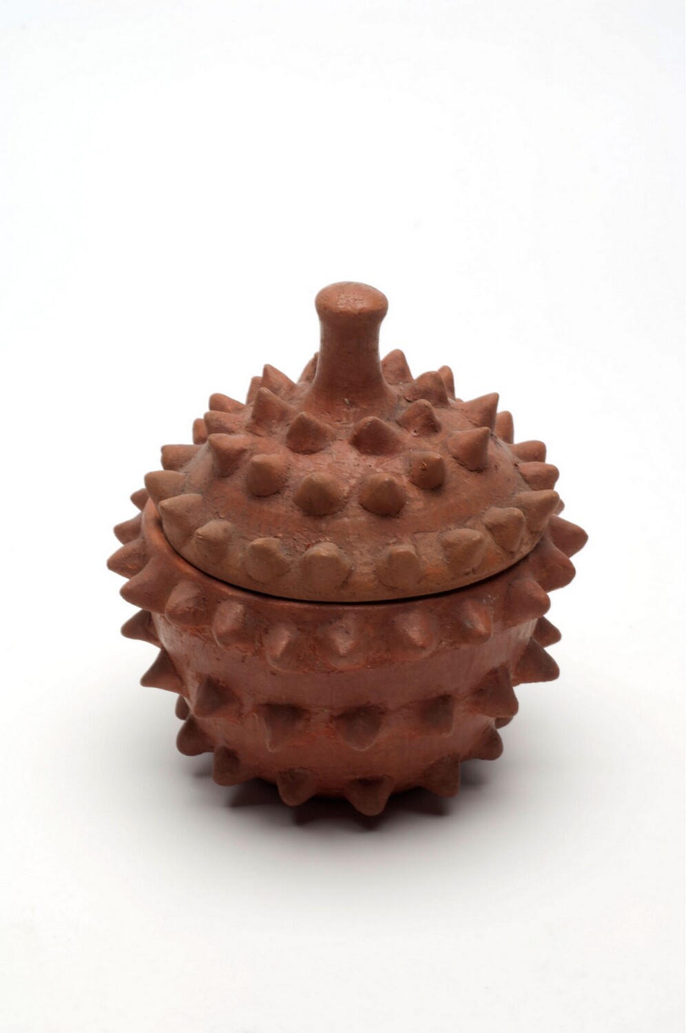 Aardewerken doos in de vorm van een durianvrucht (Q39758)
