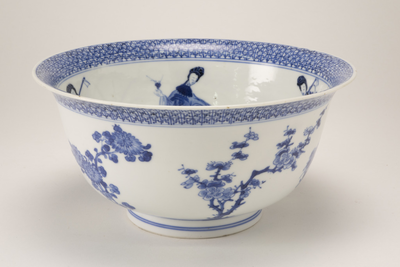 Grote blauw witte klapmuts met aan de binnenzijde vijf lijzen, Van Diepencollectie, JMD-P-1181 |