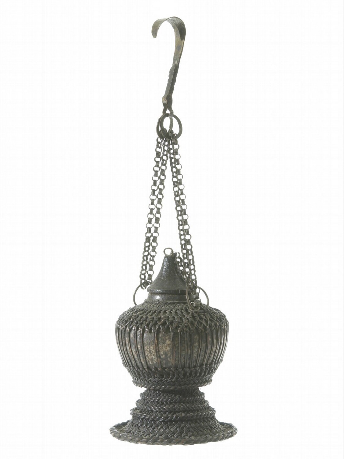Chinees porceleinen potje met houten stop in houder van rotan vlechtwerk||Yogyakarta (stadsgemeente)||https://hdl.handle.net/20.500.11840/68241 |