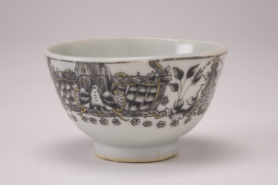 Een Chine de Commande porseleinen wit kommetje zonder oor met op de bodem een in 'Encre de Chine' aangebrachte Europese voorstelling van de godin Juno (Hera), de godin van het huwelijk, Van Diepencollectie, JMD-P-1318 |
