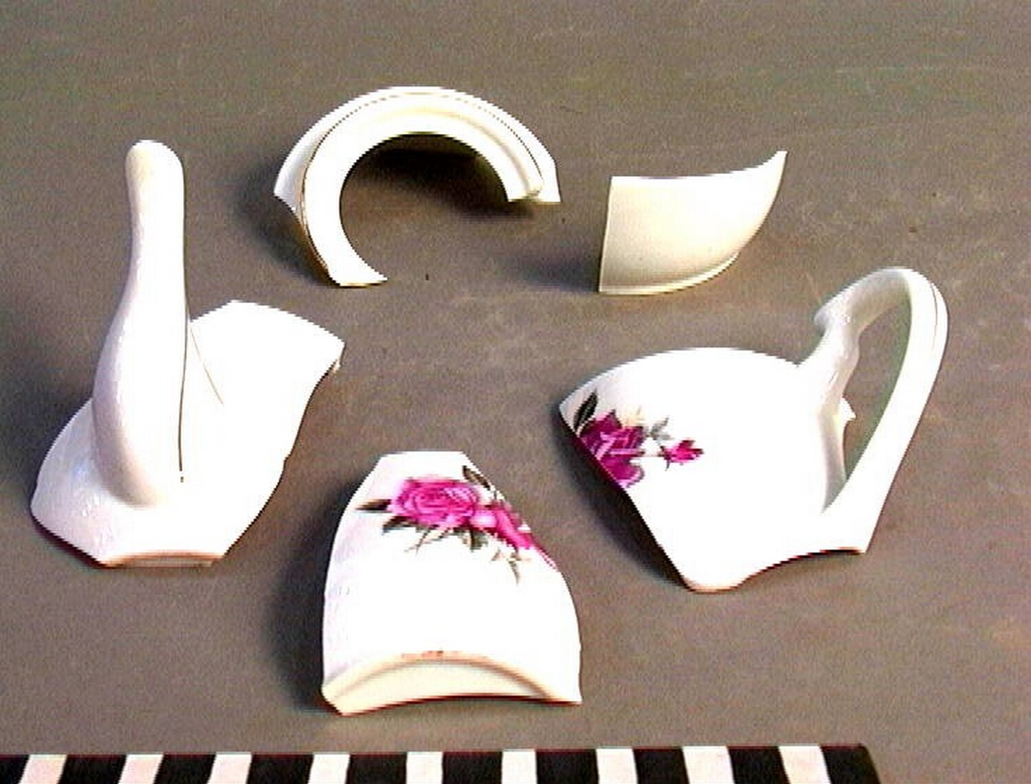 Porseleinen theepot met een roosmotief, gebroken (Nederlands)