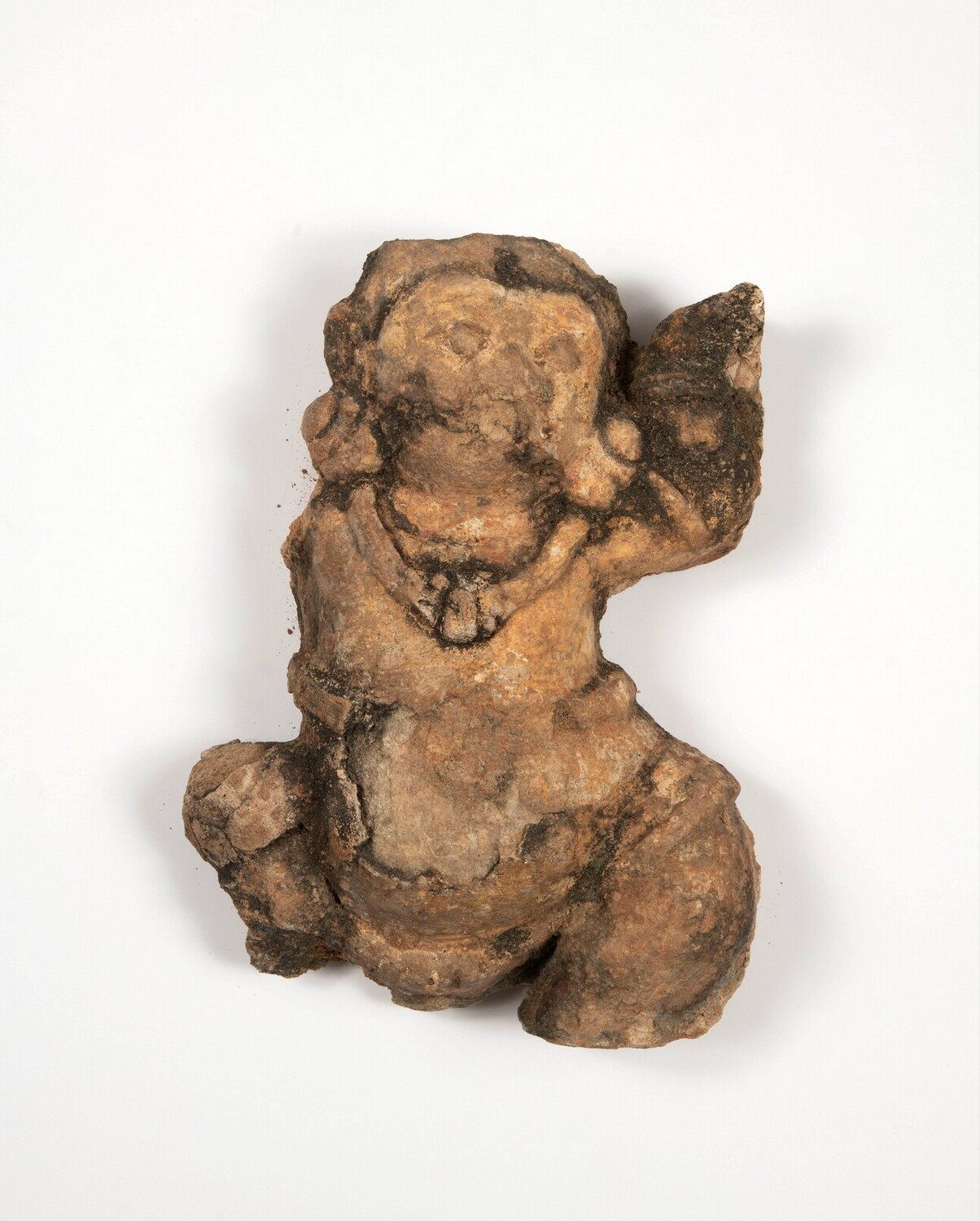 Onderdeel van een aardewerken beeld van de Polonna ruwa-tempels, voorstellende een menselijk figuur (Nederlands)