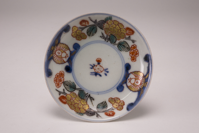 Klein Imari schoteltje met bloemdecoraties.