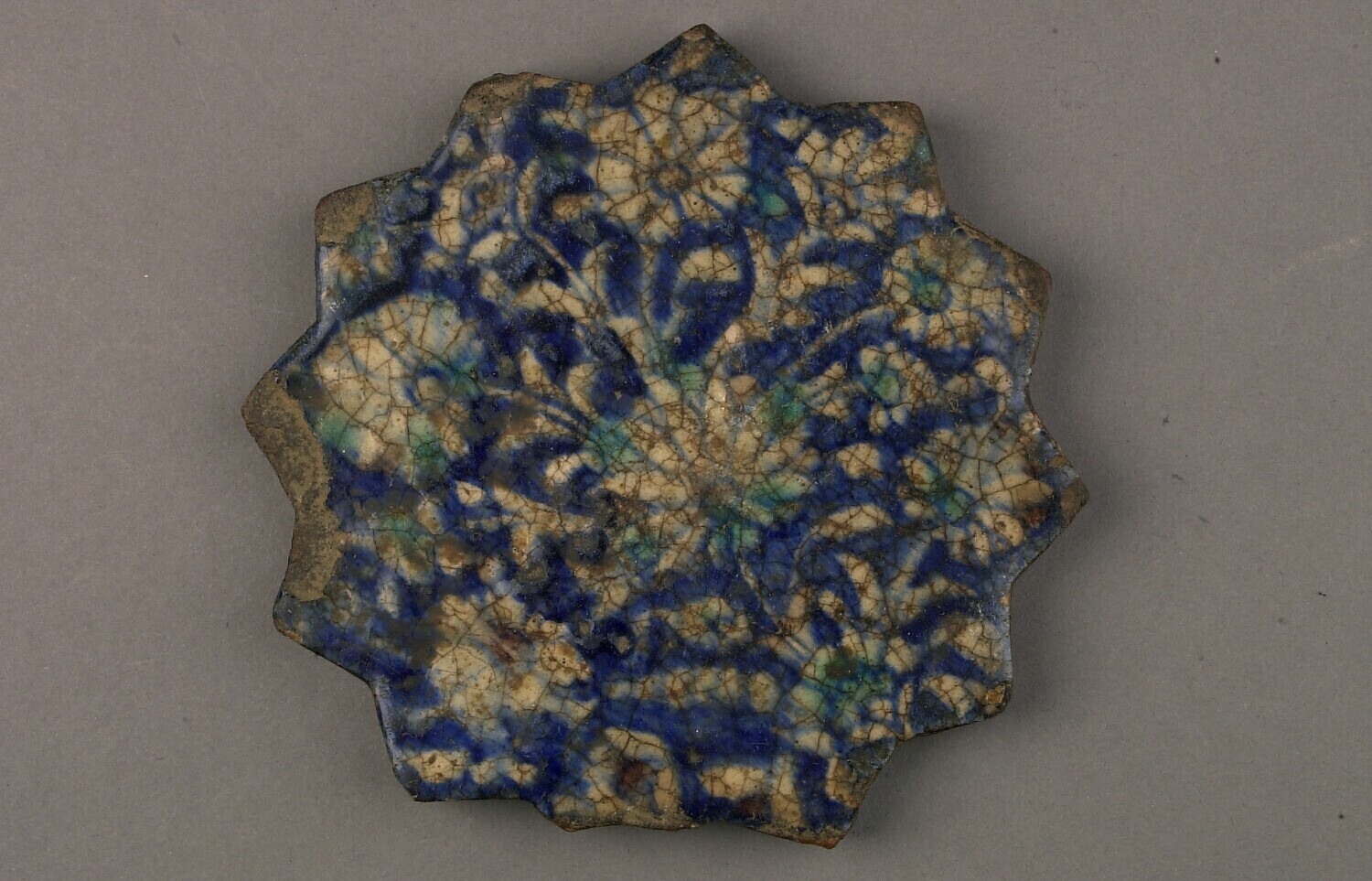 Geglazuurde aardewerken wandtegel in de vorm van een 12-puntige ster||Teheran||https://hdl.handle.net/20.500.11840/122748 |