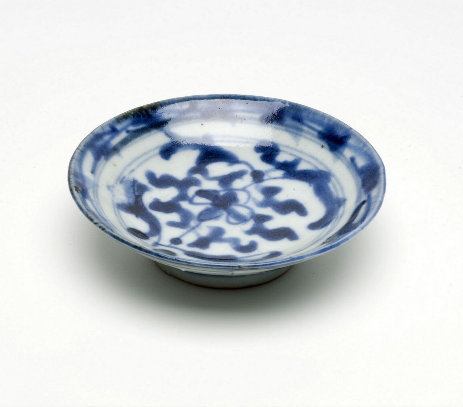 Blauw porseleinen bakje behorend bij model van een Javaanse winkel (Q42648)