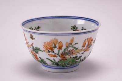 Wit kommetje met aan de binnen- en buitenzijde een fijn famille verte rots, vogel- en bloemdecor, Van Diepencollectie, JMD-P-1471 |
