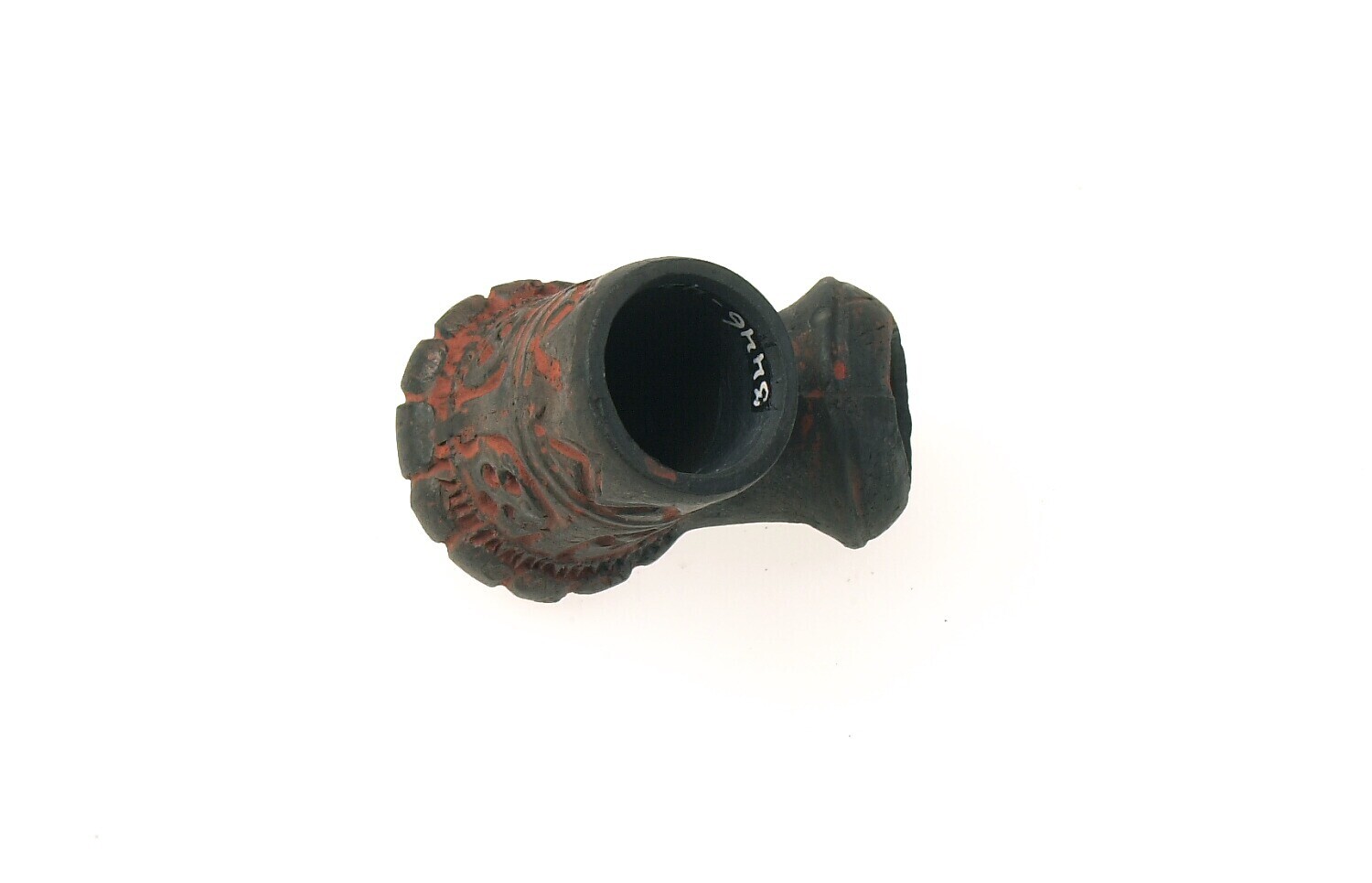 Aardewerken pijpenkop met rode verfstof