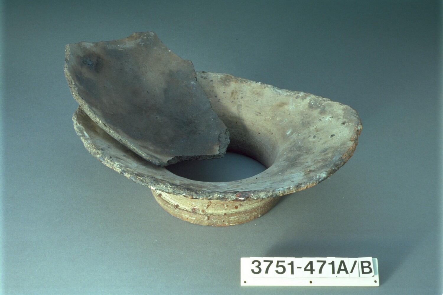 Houtskoolkomfoor bestaande uit twee aardewerk scherven (Nederlands)