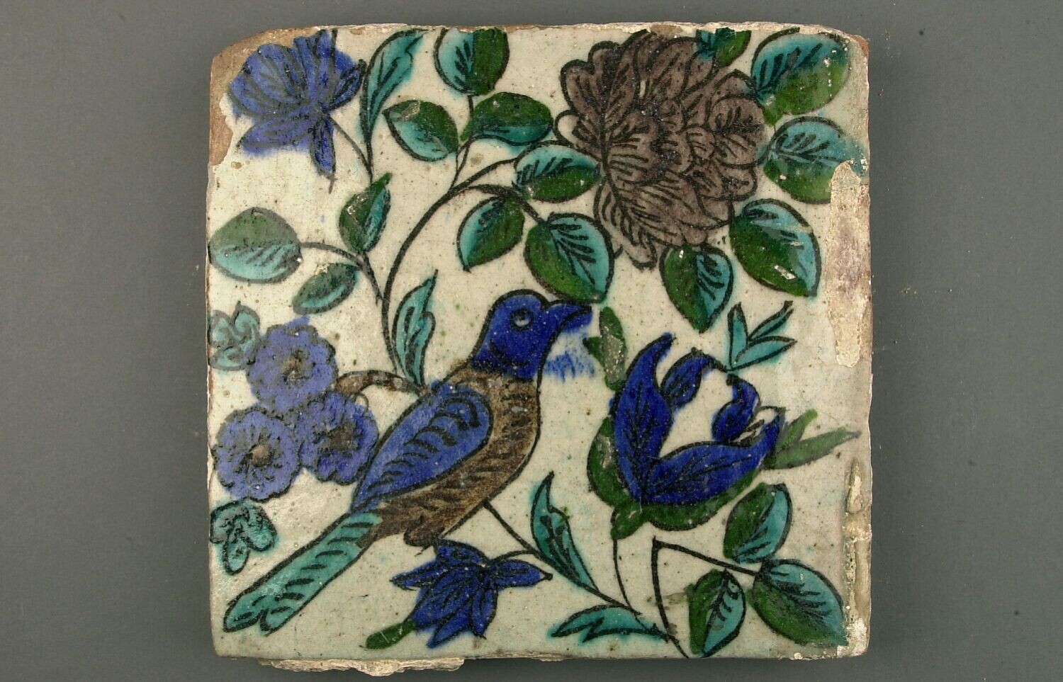 Geglazuurde aardewerken tegel met een afbeelding van een vogel (Nederlands)