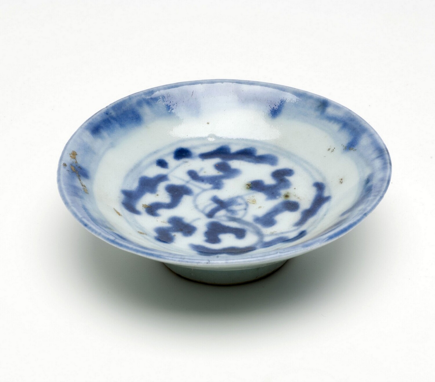 Blauw porseleinen bakje behorend bij model van een Javaanse winkel (Q43914)