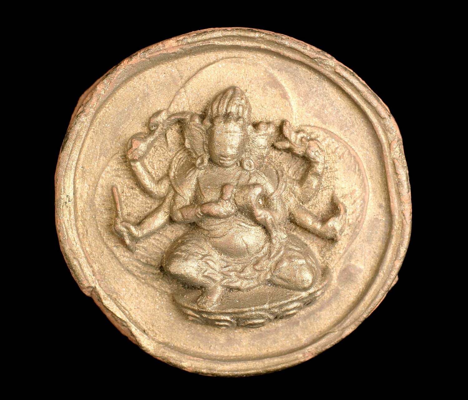 Votief-plaque met voorstelling van een drie-hoofdige godheid, mogelijk Halahala Lokesvara