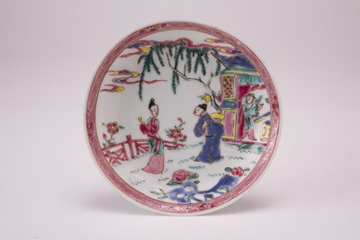 Wit schoteltje met op de voorzijde een famille rose decor met lijzen, Van Diepencollectie, JMD-P-1639 |