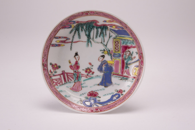 Wit schoteltje met op de voorzijde een famille rose decor met lijzen, Van Diepencollectie, JMD-P-1640 |