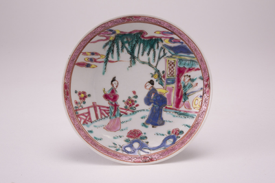 Wit schoteltje met op de voorzijde een famille rose decor met lijzen, Van Diepencollectie, JMD-P-1641 |