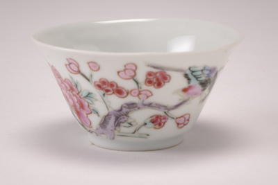 Wit glad kommetje met Famille rose bloemdecor en een Archer-fazant.