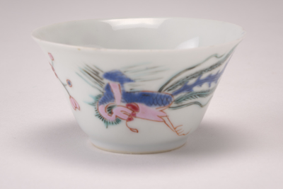 Wit glad kommetje met Famille rose bloemdecor en een Archer-fazant.