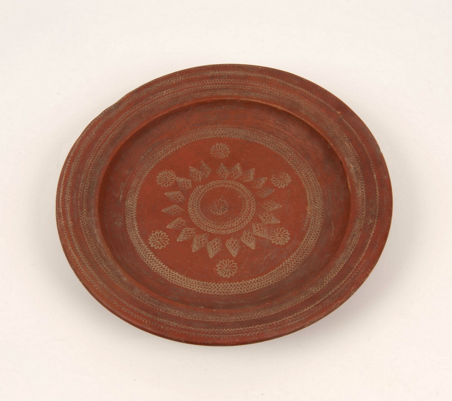 Aardewerken eetbord met reliëfversiering (Nederlands)