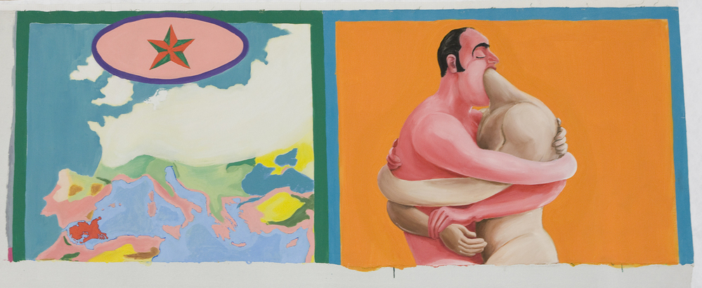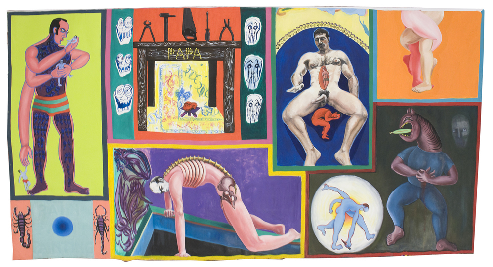 Dit schilderij toont zeven scenes, waarin de persoonlijke lijdensweg van de maker de verbindende factor is. 'Pain-paint-painting' zijn de enige woorden op het doek. Een scene midden op het doek laat de timmerwerklpaats van 'Papa" zien, met maskers die de boze buitenwereld verbeelden. in een andere scene verlpaatst hij Nederland naar de richting van Afrika. In de meeste plaatjes komt de kunstenaar zelf voor, gekweld door pijnlijke gewrichtsaandoening, de ziekte van Bechterev. Een monster symboliseert deze ziekte. De inspiratie van eigentijdse Afrikaanse kunst heeft Mosselman, die slechts enkele schilderijen heeft gemaakt, hier aangezet tot een eigen 'westerse' bewerking. (Nederlands)