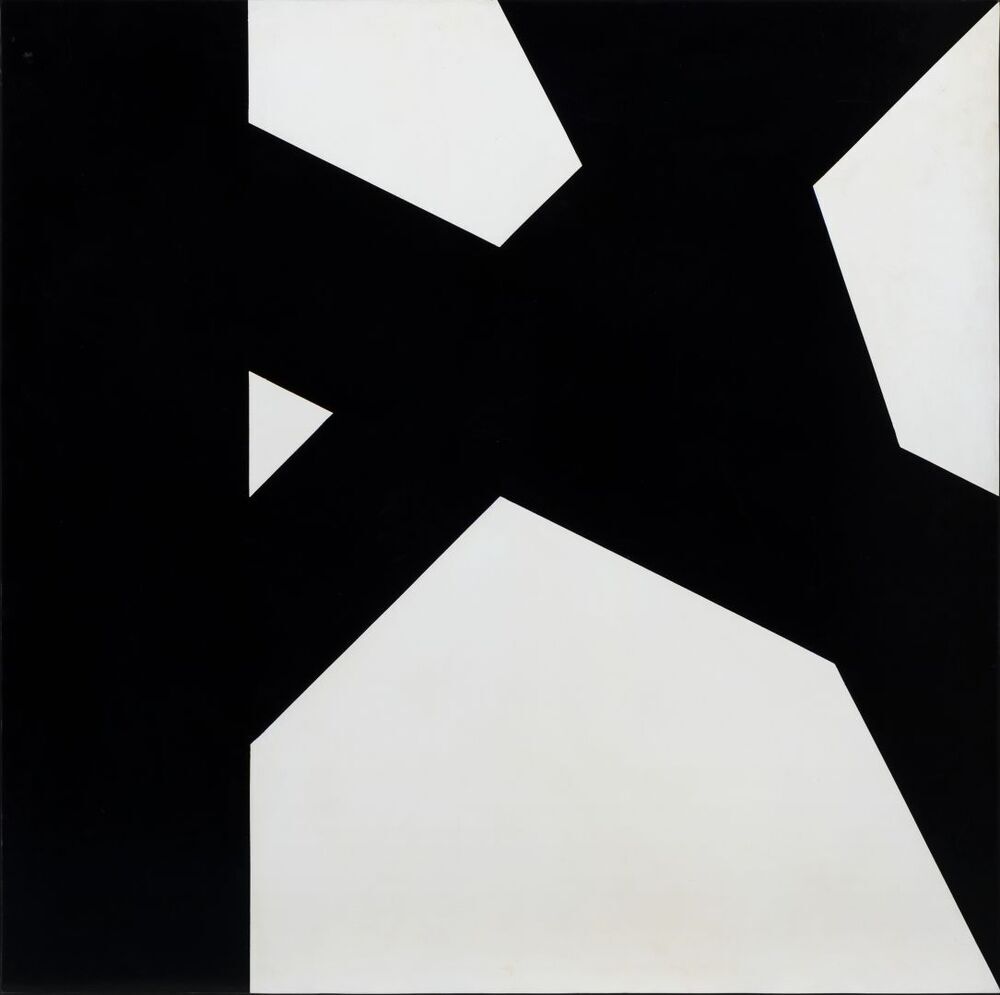 In dit vroege, eenvoudige schilderij is de rationele werkwijze die Struycken ook in zijn latere, meer complexe werken zou toepassen, goed na te voelen. Het schilderij vloeit voort uit een aantal regels die de kunstenaar zich vooraf gesteld heeft. In dit geval zijn de vier zijden telkens in vier gelijke delen verdeeld en lopen vier zwarte 'balken' volgens een bepaald systeem van het ene kwart van een zijde naar een ander. (Nederlands)