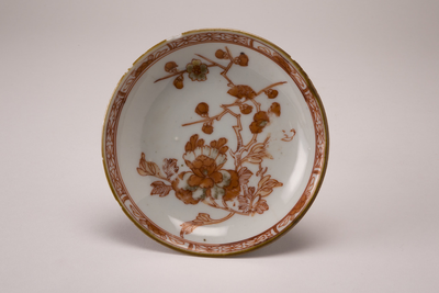 Capuceiner schoteltje met op de binnenzijde een ijzerrood bloemdecor.