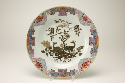 Wit bord met op de rand een famille rose servetdecor, Van Diepencollectie, JMD-P-1803 |