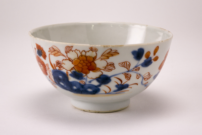 Imari kommetje op standring met op de buitenzijde een meerkleurig bloemdecor.