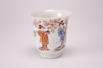 Wit Satsuma eierschaal kopje met op de buitenzijde twee vrouwen en 1 krijger in meerdere kleuren, Van Diepencollectie, JMD-P-1857 |