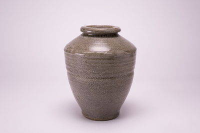 Grijs beige Celadon (?) stokkruik met smalle hals en zeer fijn gecraqueleerde glazuurlaag, Van Diepencollectie, JMD-P-2085 |