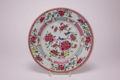 Plat famille rose bord met op het plat een pioen- en vogeldecor, Van Diepencollectie, JMD-P-2300 |