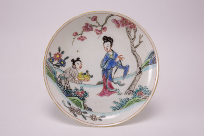 Schoteltje met op het plat een famille rose lijzendecoratie, Van Diepencollectie, JMD-P-2310 |